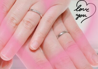 かぼちゃの馬車を象ったキュートなエンゲージリングと、馬車の軌道を表現したマリッジリング。