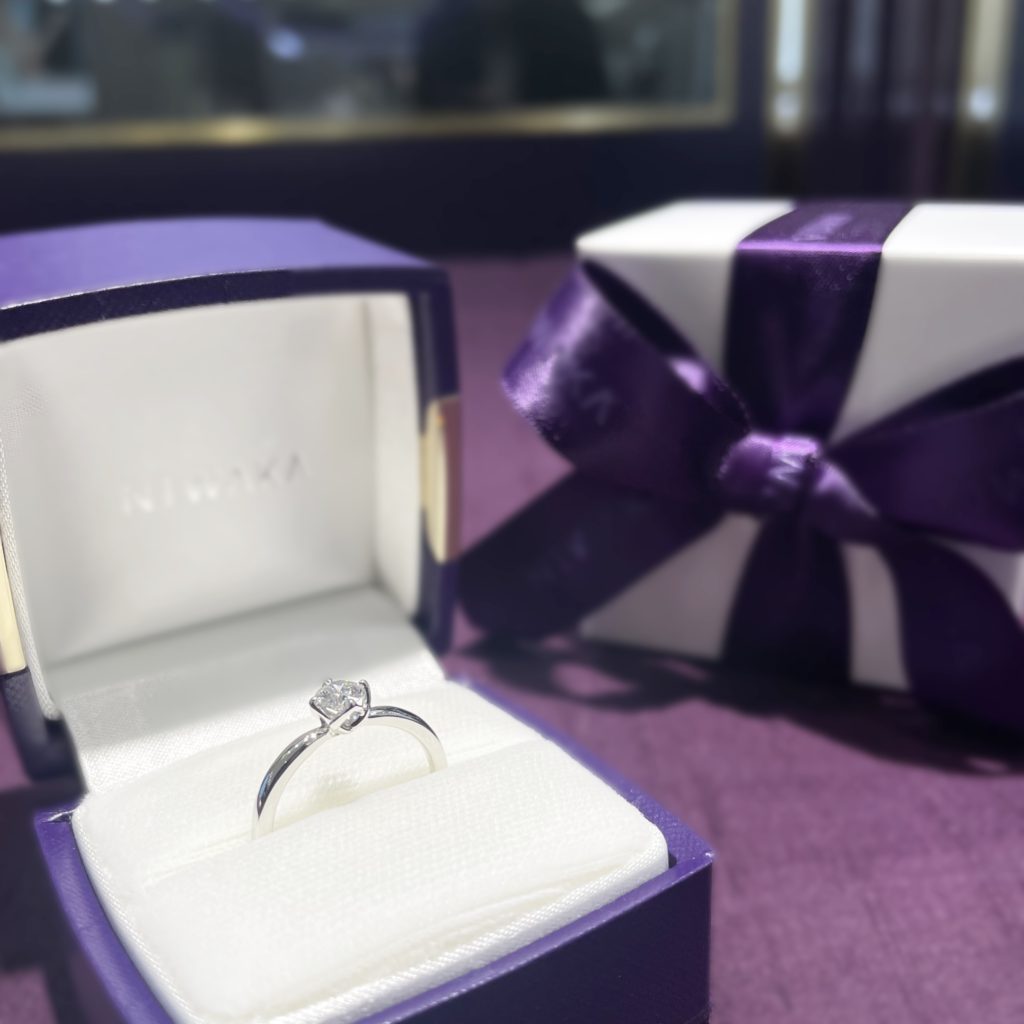 エンゲージメントリングは、ダイアモンドを支えるように結わえた紐の間から光が入り込み、輝きを放ちます。