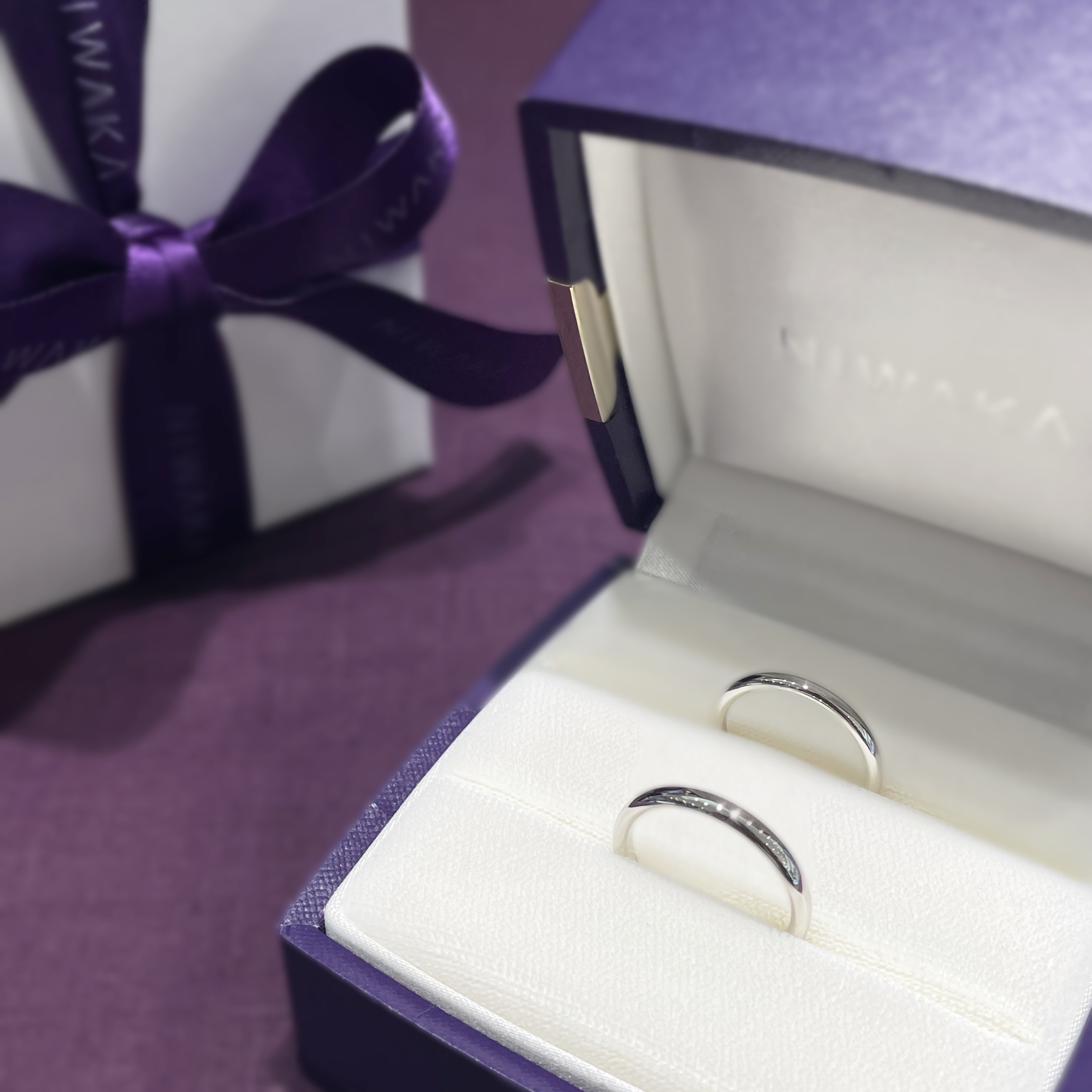 人生のお守りとなるように、ふたりのもとへ寄せられた祝いの言葉が込められたデザインの結婚指輪。