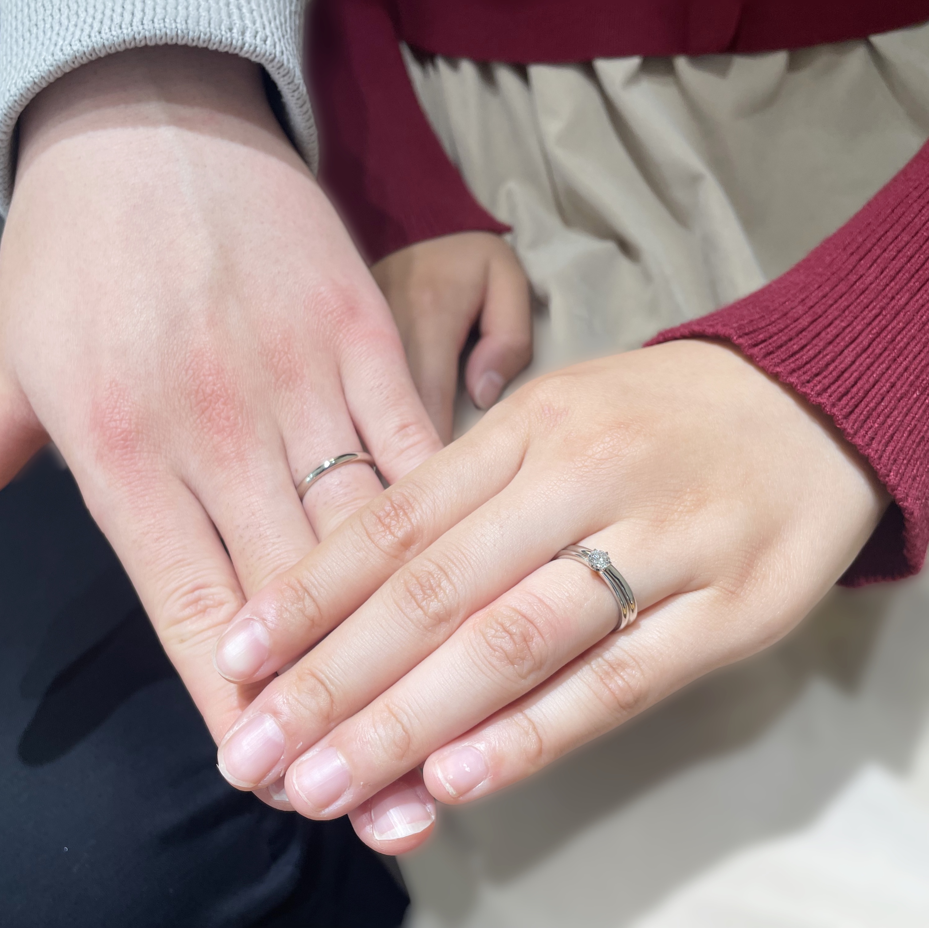 マリッジリングはシンプルなデザインというイメージが強かったおふたり![]()