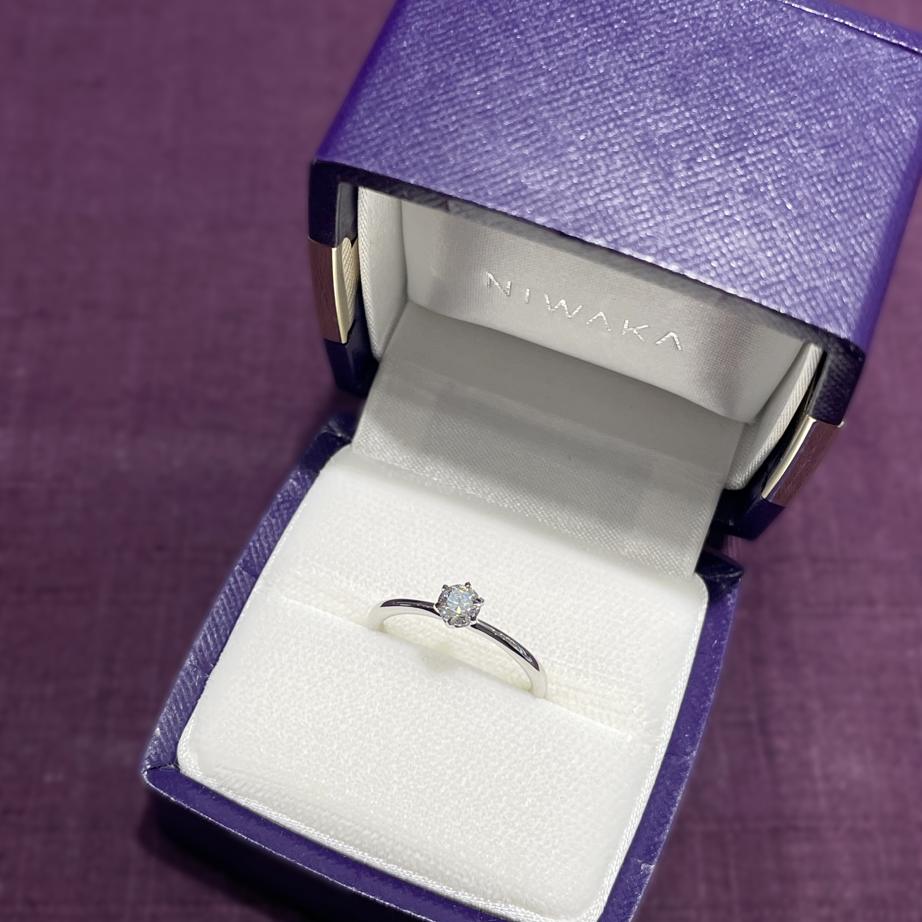 お互いを愛おしく思う優しい気持ちを、細身のフォルムで表現した婚約指輪。