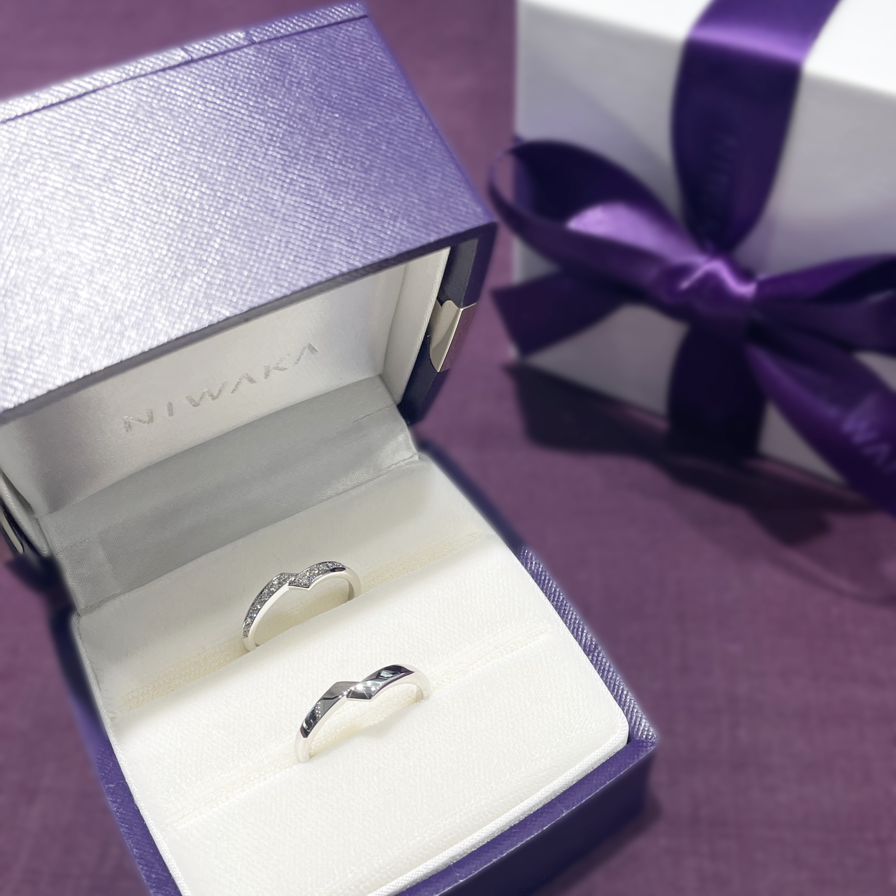 程よい存在感と独特なラインが特徴で、メレダイアモンドが上品な華やかさを演出してくれます。