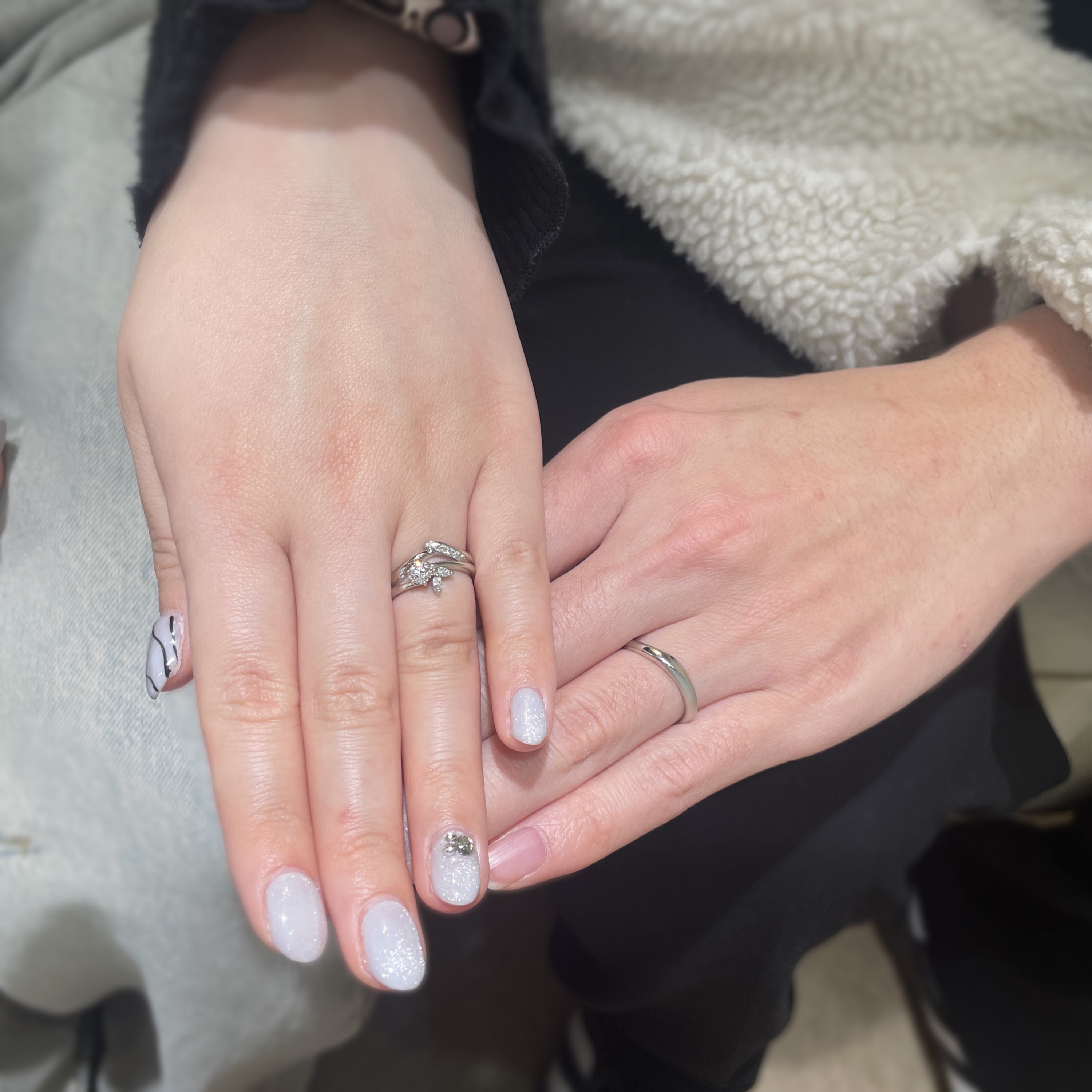 出会った頃の初々しい気持ちを薄紅の桜でイメージした結婚指輪。