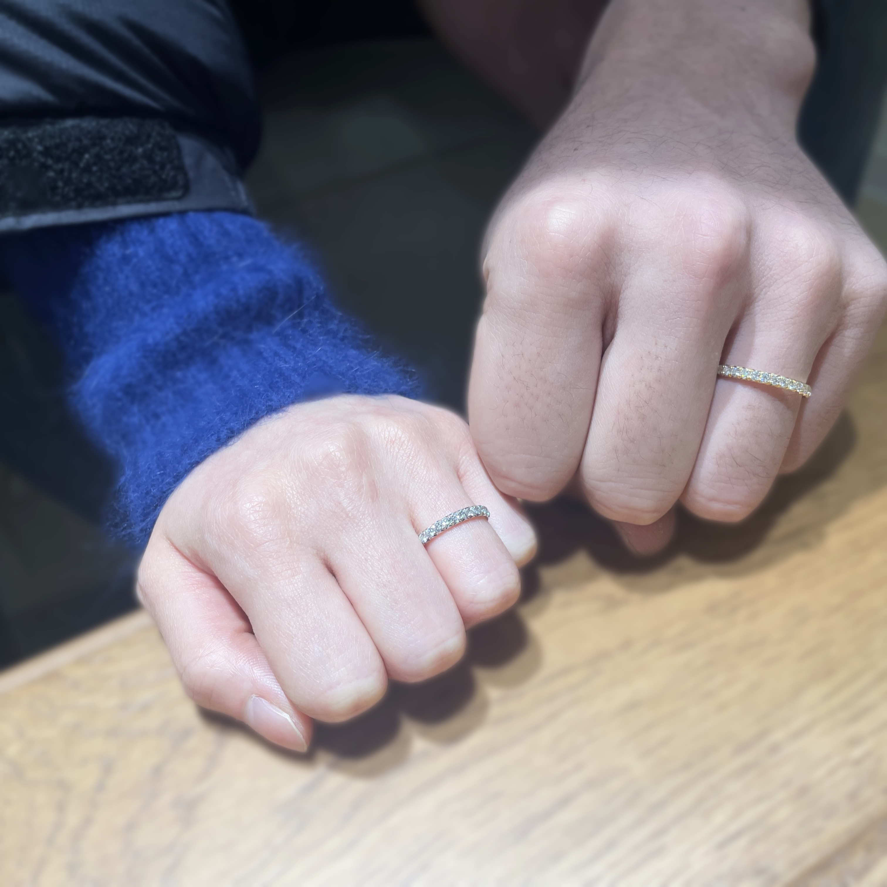 ダイアモンドが華やかな、ハーフエタニティタイプの「ことほぎ」を