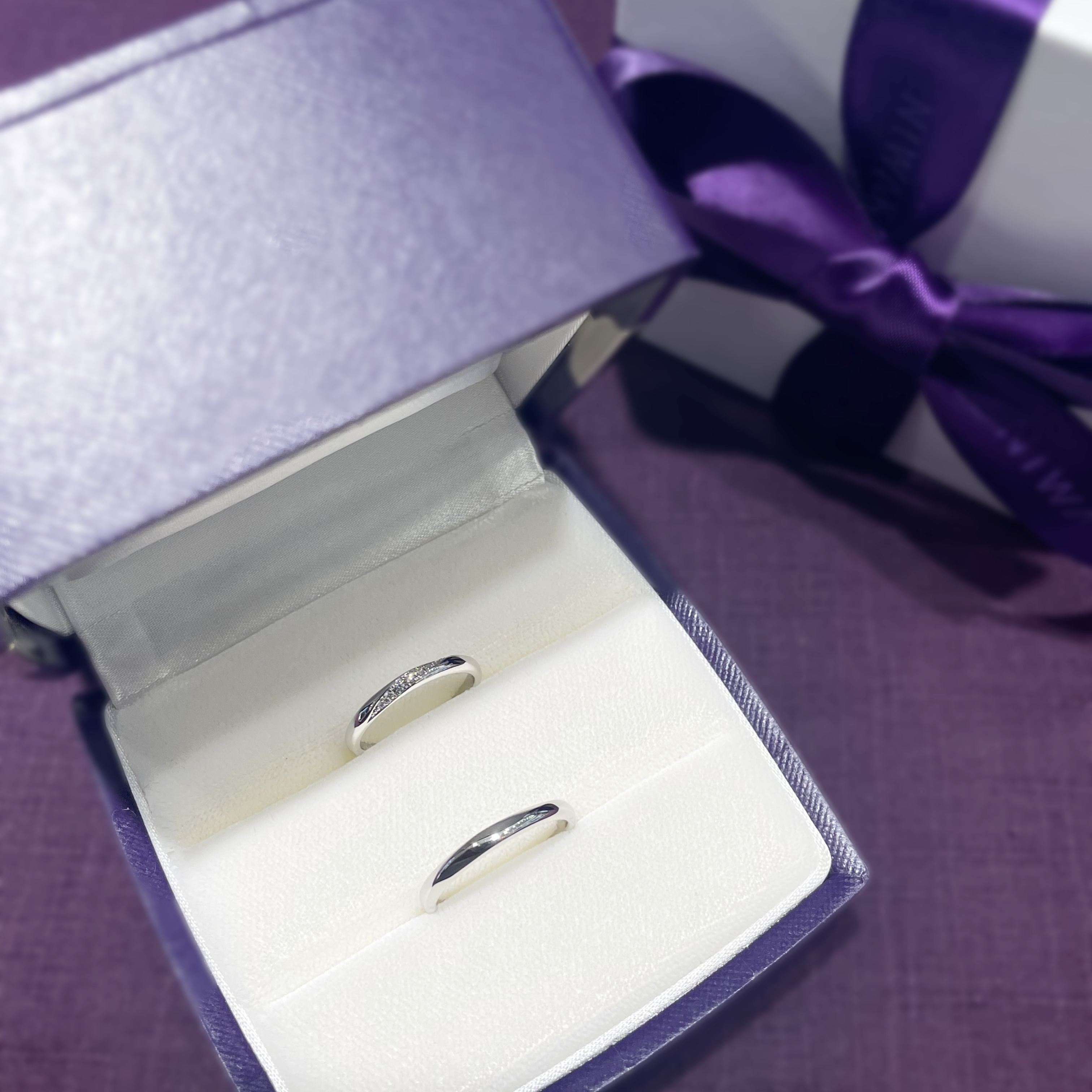 指になじむ優しい丸みが特徴の結婚指輪です。