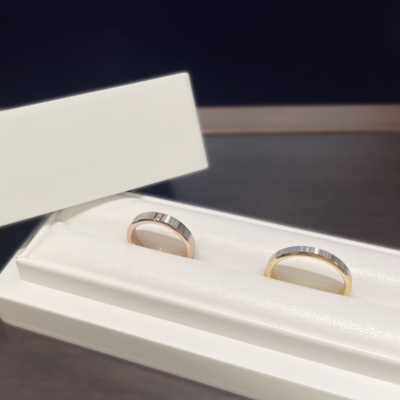 M様はプラチナ、R様はイエローゴールドで